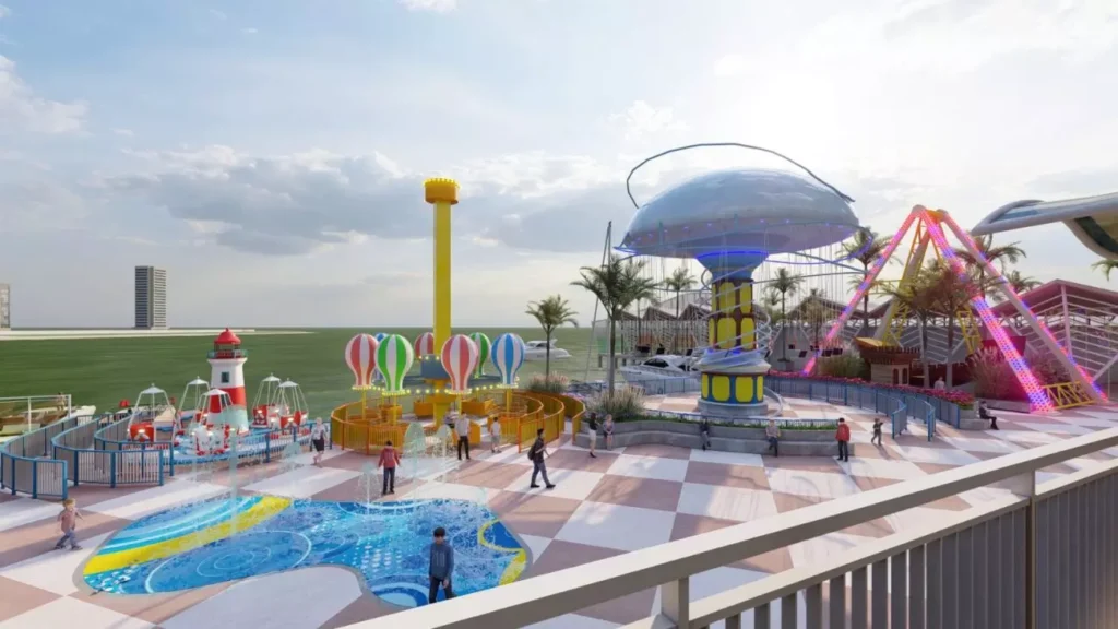 A estrutura terá 360 metros de extensão e reunirá mais de 30 atrações, incluindo roda-gigante, torre de queda livre, cinema 8D, além de praça gastronômica e mix de lojas.
